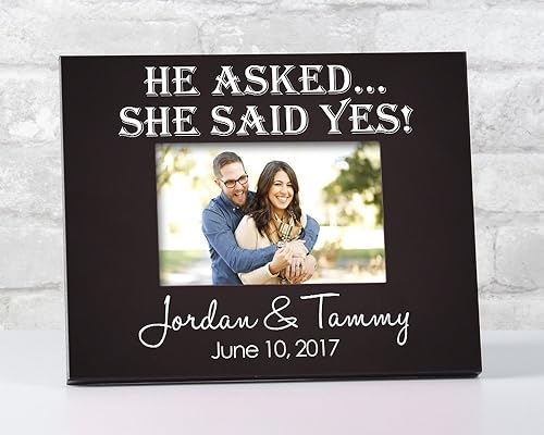 Personalized He Asked She Said Yes Engagement Picture Frame