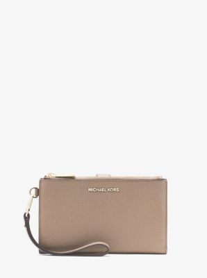 Adele leather smartphone wallet michael kors done in a rich pebbled leather for timeless status this sleek wallet has two zip sides that unfold to reveal a center with pockets for all the essentials from credit cards to your smartphone. Done in a rich pebbled leather for timeless status this sleek wallet has two zip sides that unfold to reveal a center with pockets for all the essentials from credit cards to your smartphone. Receive complimentary shipping returns on your order.